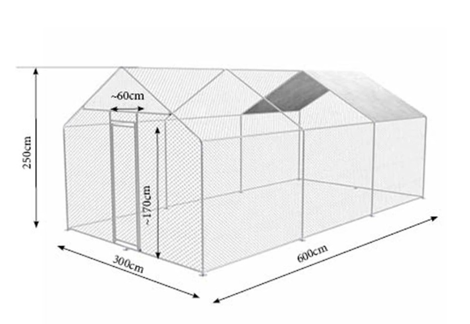 Výběh pro drůbež, rozměry 300x600x245 cm, velikost ok 45x25mm, snadná montáž, pozinkované trubky Ø25x0,65mm. Jestliže hledáte střední výběh pro slepice nebo jinou drůbež, máme pro Vás skvělé řešení. Výběh můžete na zahradě sami jednoduše sestavit. Výběh je vybaven ochrannou plachtou, která drůbež bude chránit před sluncem. Vyrobený je z pozinkovaného kovu a vydrží vám po dlouhá léta. Do výběhu budete mít snadný přístup skrz dostatečně velkou branku.