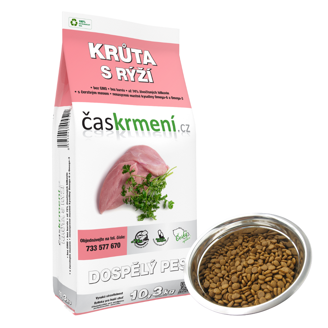 Granule Časkrmení jistě ocení řada zákazníků, která u nás již kupuje kuřecí stehna. A opět jako tomu je u těchto konzerv jsme dali přenost českému výrobci. Nyní jsme ale dali přednost většímu podílu krůtího masa.